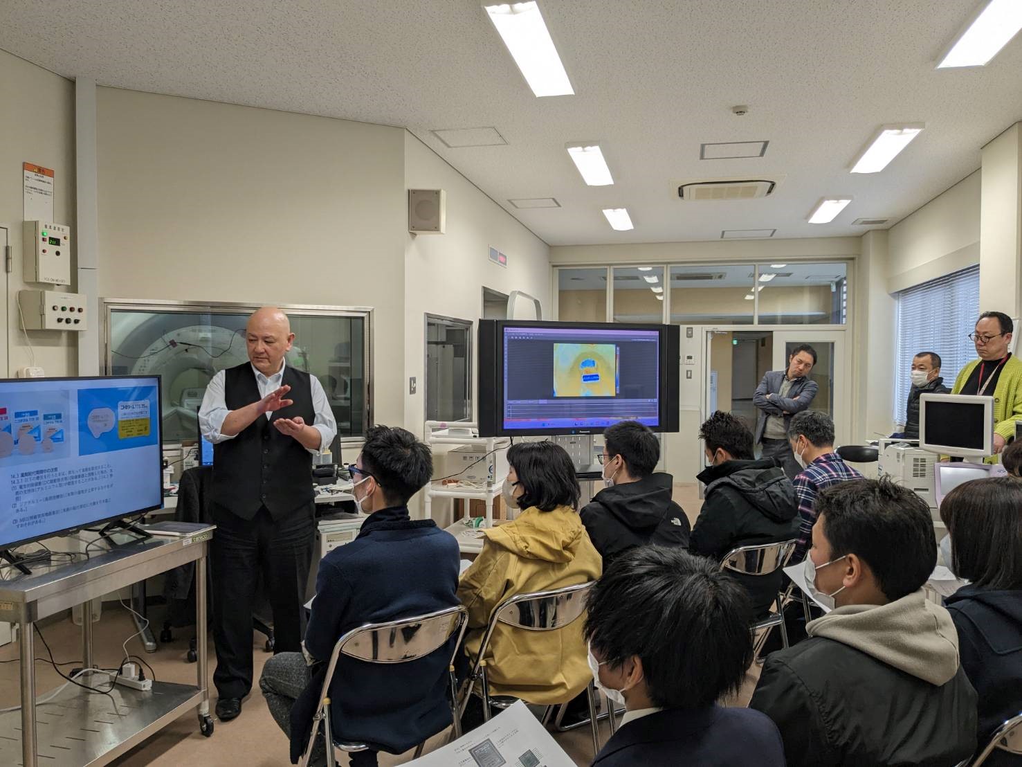 座学の一つ目は「MRI 装置のハードウェアと体内ディバイスの安全性について」を香川大学医学部附属病院の小畠先生に講演いただきました.MRI 装置の基本的な構造から体内金属に対する考え方を丁寧に説明いただきました.