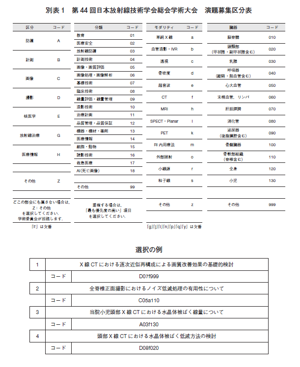 別表1 第44回日本放射線技術学会総会学術大会 演題募集区分表(PDF)