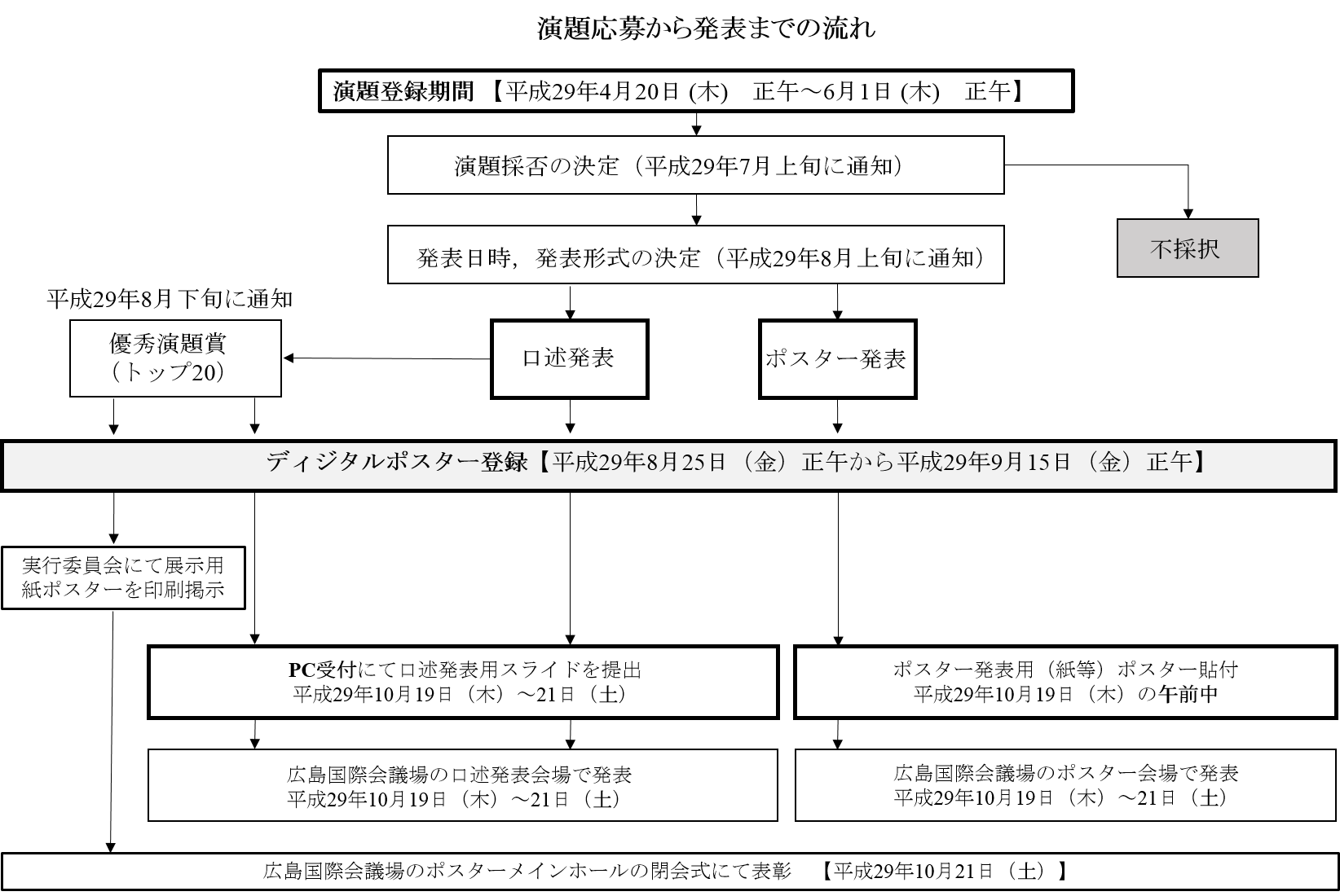 演題応募から発表までの流れ(以下画像クリックで拡大します。)
