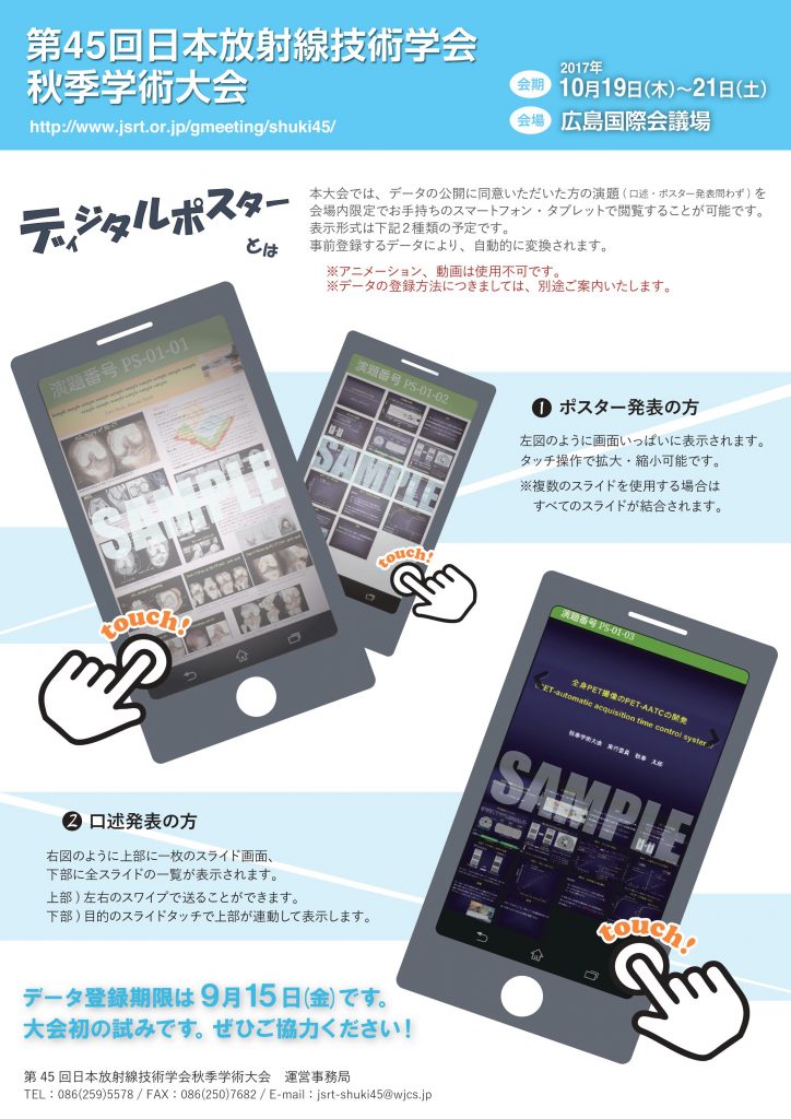 なお,登録等でご不明な点がありましたら,第45回日本放射線技術学会秋季学術大会 運営事務局までお問い合わせください。