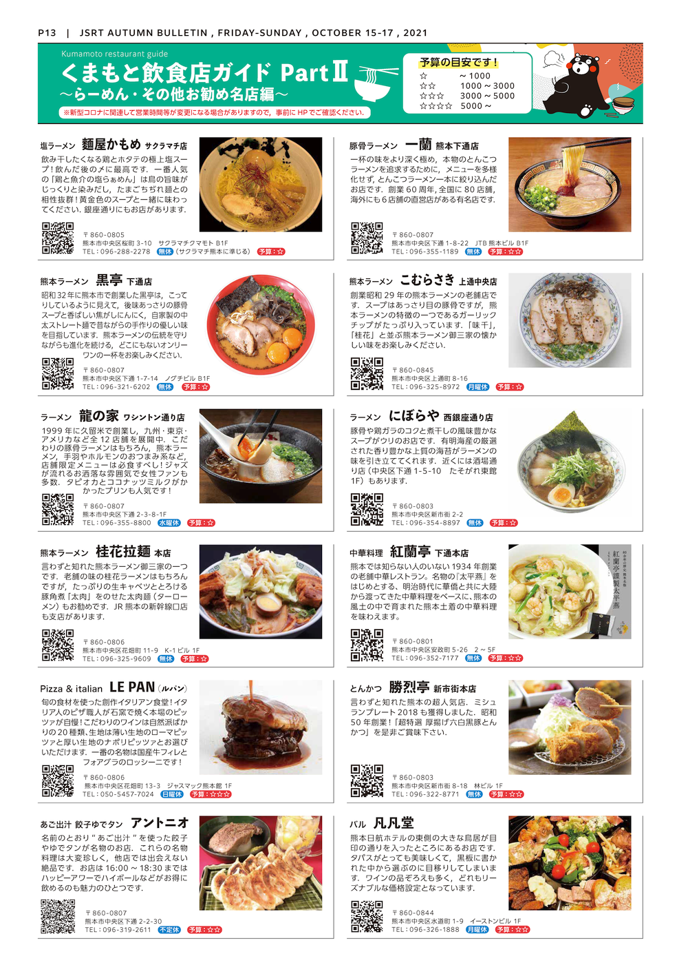 ▶ P13 ・くまもと飲食店ガイド PartⅡ ~らーめん・その他お勧め名店編~