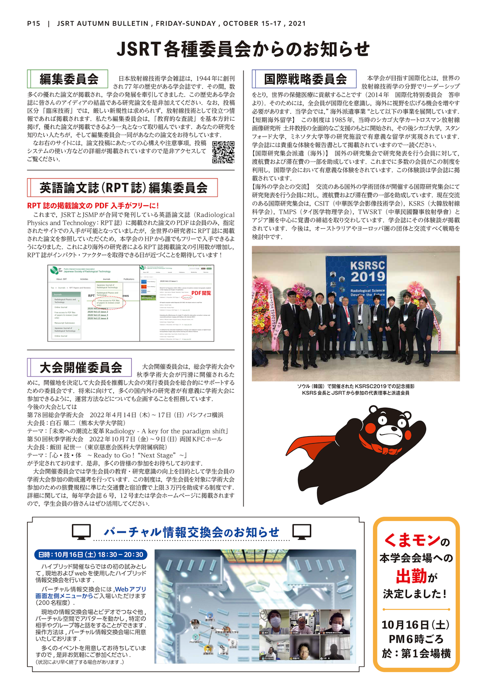 ▶ P15 ・JSRT 各種委員会からのお知らせ