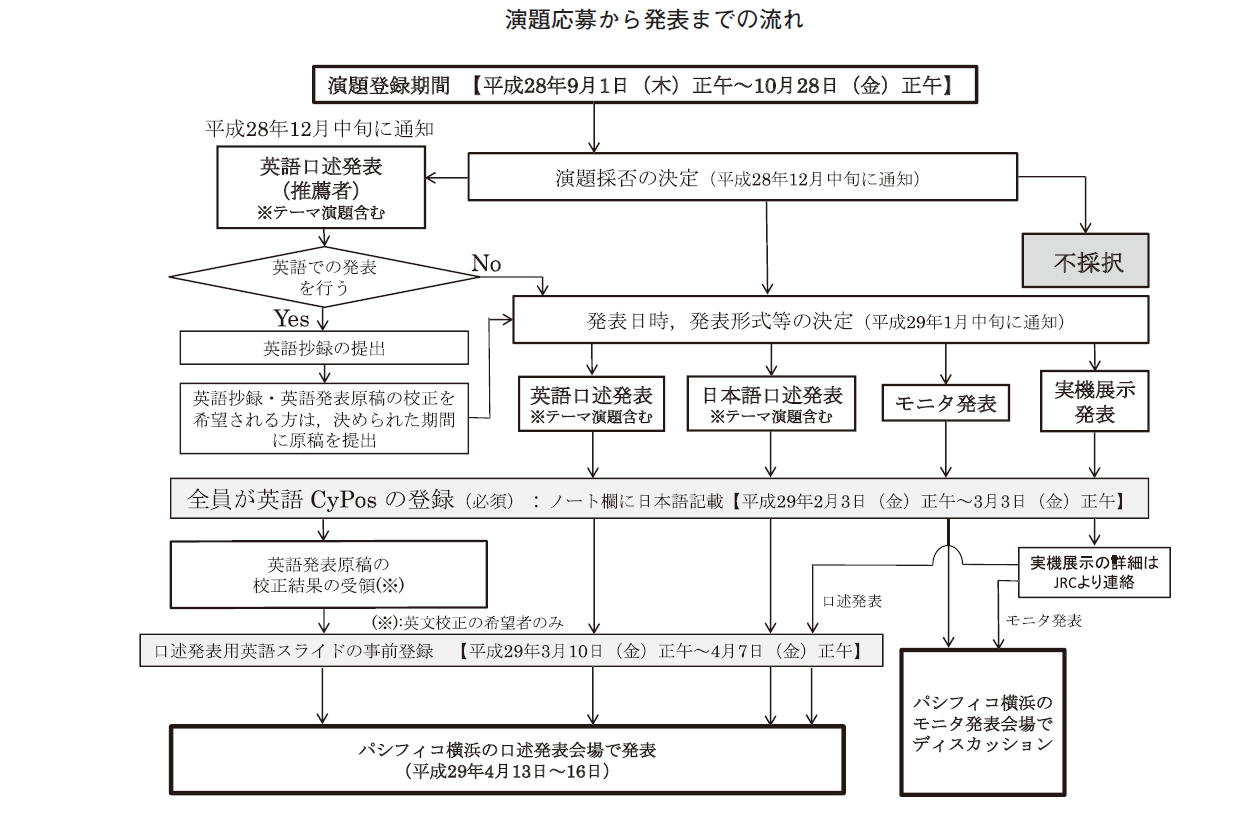 演題応募から発表までの流れ(以下画像クリックで拡大します。)