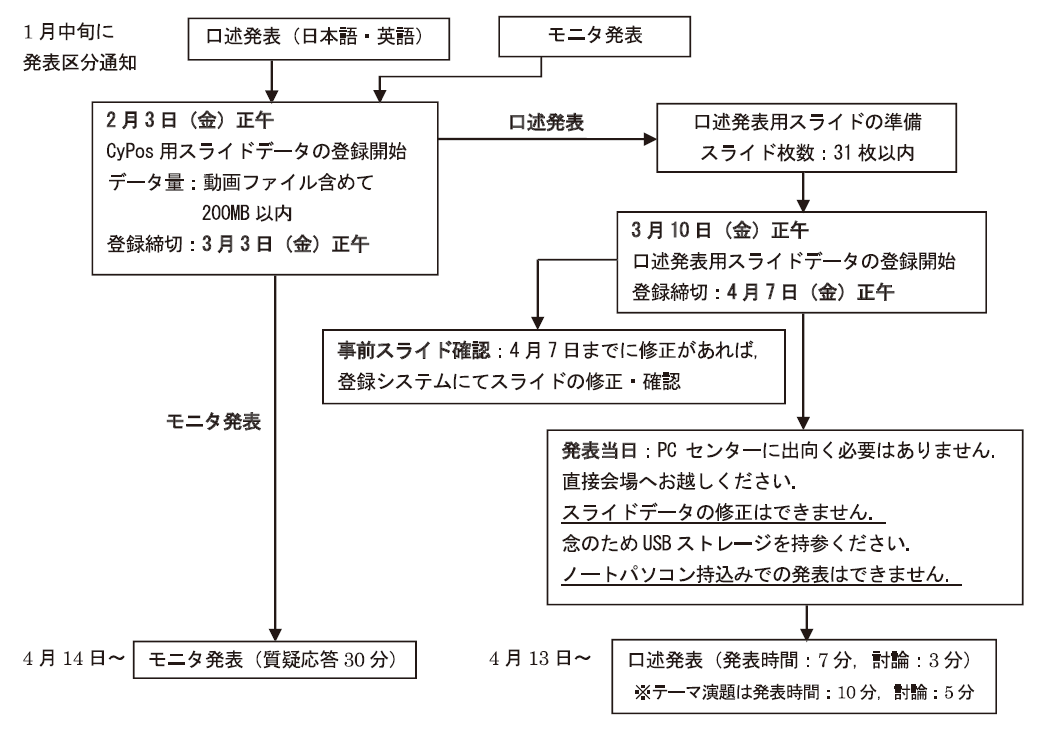 | 2. | 口述発表スライドは必ずしもCyPosスライドと同じである必要はありません. |