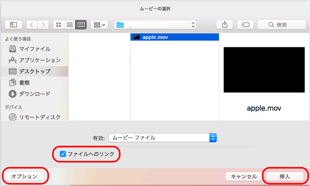 ※Macintosh の場合は「オプション」を押して「ファイルへのリンク」にチェックを⼊れてください。