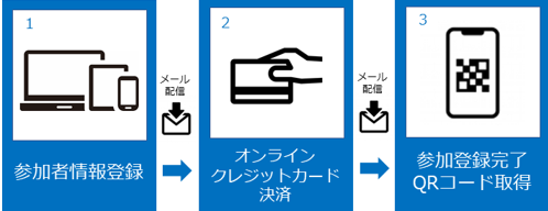 オンライン参加登録完了時に発行されるQRコードをモバイル端末または印刷でご用意の上でご来場ください。