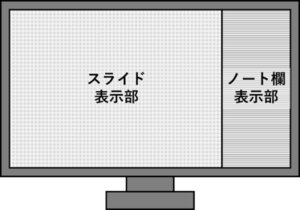 口述発表では「メモ表示機能」を使用できます.次のスライドを表示する機能や文字サイズの変更機能はありません.ノート欄の表示情報は発表者用のモニタにのみ表示され,座長用モニタと会場スクリーンにはスライド表示部の情報のみが表示されます.演台上に設置された発表者用モニタの左側には4:3の表示範囲にあわせたスライド,右側にノート欄が表示されます(図).