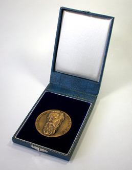 瀬木賞にはレントゲン博士の肖像を刻んだメダル(文鎮)が添えられています。これはレントゲン博士の 業績とその敬虔なる生涯に深く感銘を受けておられた瀬木先生の志を伝えるものです。彫塑家岡三樹雄先 生の労作で、裏面には句がしたためられています。『み仏のしろしめす路われはゆく 善意にみちし君を 憶いて』
