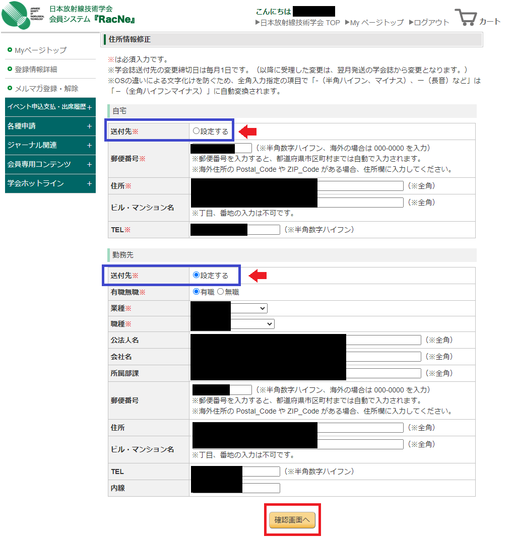5 住所情報修正[確認] ページが開くので、確認して、「確定する」ボタンをクリック
