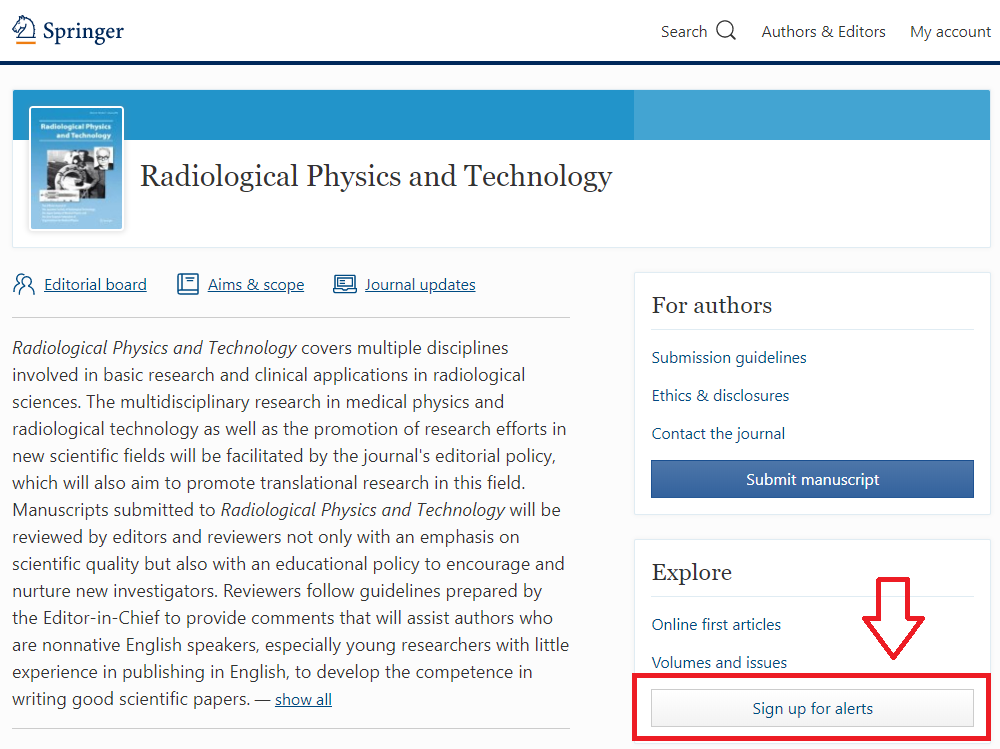 ぜひ,ジャーナルサイト(https://www.springer.com/12194)にある「Sign up for alerts」アイコンからRPT誌のJournal alertをご登録いただき,RPT誌に掲載される魅力的な論文の数々を見逃さないようにしてください.