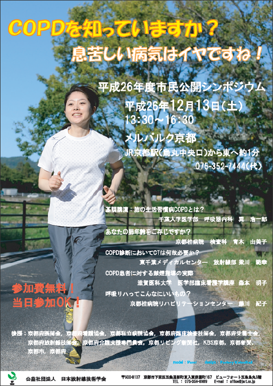 | 後援 | : | 京都府,京都市,京都府医師会,京都私立病院協会,京都府放射線技師会,京都府看護協会,京都府栄養士会,京都府臨床検査技師会,京都府介護支援専門員会,KBS京都,京都リビング新聞社,京都新聞 | ||||||||||||||||||||||||||||||||||||||||||||||||||||||||