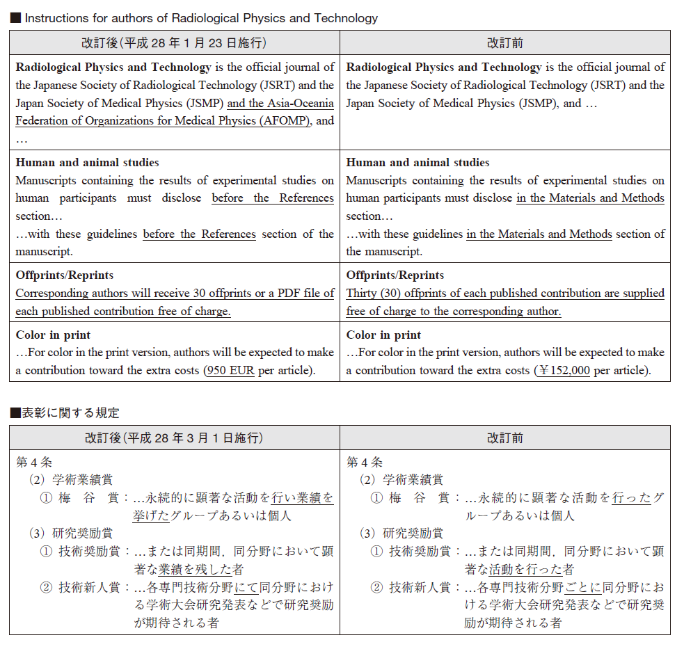 平成27年度第6回理事会(平成28年1月23日開催)にて,以下の通り諸規約・諸規定が一部改訂となりましたのでご案内します.なお,現行の諸規約・諸規定の全文は,ホームページの[学会について]⇒[定款および諸規約・諸規定]からご覧いただけます.