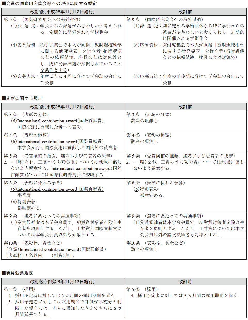 平成28年度第4回理事会(平成28年11月12日開催)にて,以下の通り諸規約・諸規定が一部改訂となりましたのでご案内します.なお,現在施行されている諸規約・諸規定の全文は,ホームページの 学会について ⇒ 定款および諸規約・諸規定 からご覧いただけます.