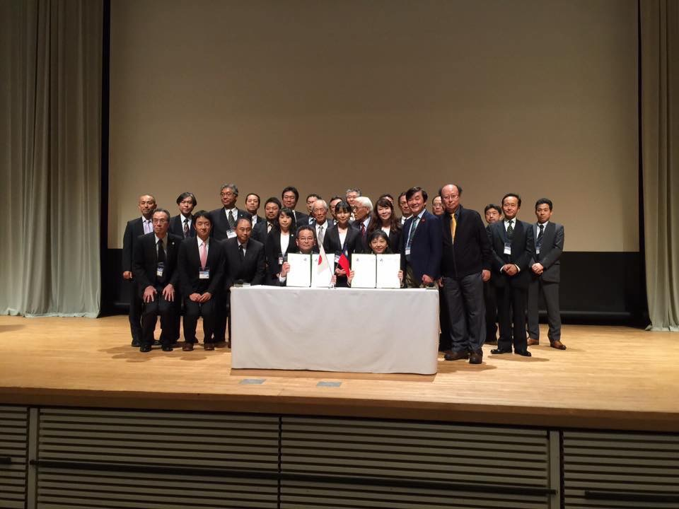 覚書の交換を終え,握手する小倉代表理事とChiung-Wen Kuo会長