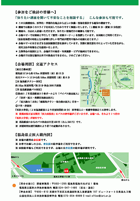 | 会場 | : | 福島県立医科大学 講堂(福島県福島市光が丘1番地) | |||||||||||||||||||||