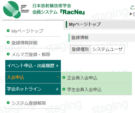 また、このボタン設置に伴い会員システム『RacNe』の左メニューを以下のように刷新しました.