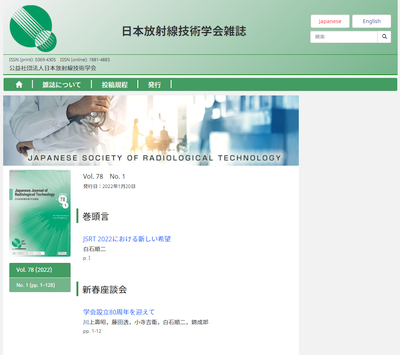 日本放射線技術学会雑誌 第78巻 第1号(2022年1月20日発刊)から日本放射線技術学会雑誌(学会誌)のオンラインジャーナルサービスを開始しました。