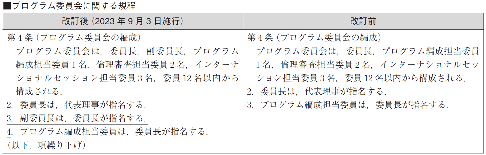 2023年度第4回理事会(2023年9月3日開催)にて,以下の諸規約・諸規程が一部改訂となりましたのでご案内します.なお,現在施行されている諸規約・諸規程の全文は,ホームページの 学会について⇒定款および諸規約・諸規程 からご覧いただけます.