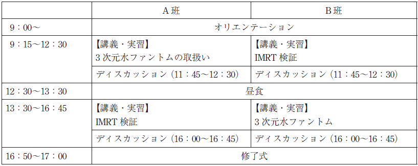 | プログラム | : | 1班10名までとして,2班に分けて実習を行います |