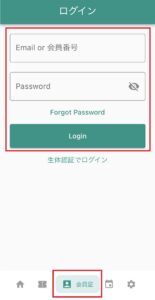 アプリをダウンロードして、アプリ下部中央の ”会員証” ボタンからログインしてください。