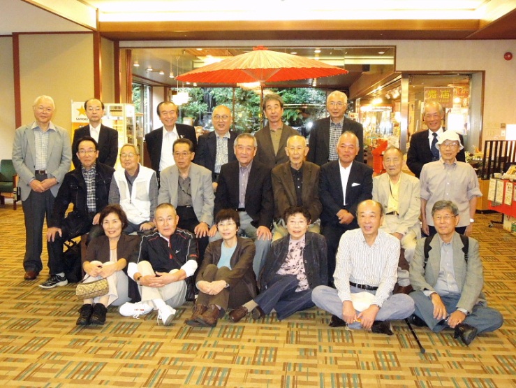 貸切バスは1時20分 保科大会長、根岸実行委員長その他多くの大会関係の皆さんによる盛大なお見送りを受けながら、タワーホール船堀を出発した。途中、大会事務局から頂いた飲み物やおつまみを堪能しながら、予想していた渋滞にも遇わず、3時20分頃ホテルおかだに到着した。大浴場でゆっくりと汗を流した後、6時から食べ放題、飲み放題の宴会が始まった。開会に先立ち、山田副会長の挨拶、飯塚先生の乾杯があった。会場には四宮先生の肝いりで、全国から集まった銘酒がずらりと並び、利酒も始まった。ホテルに直接駆けつけた方々も加わって総勢22名となり、カラオケが飛び出すなど賑やかな宴会となった。宴会の後、二次会が始まり、夜のふけるのも忘れて大いに飲み、楽しく語り合った。次の7日は生憎の天気となったが 記念撮影の後 バスで箱根へ向かった。予定を一部変更して、芦ノ湖湖畔から少し登った景勝の場所にある 成川美術館を訪れた。眼下に芦ノ湖を眺め、本来なら正面に富士山を望めるはずが、この日は残念ながら雲に隠れていた。しかし 館内は静かでゆっくり美術作品の鑑賞ができ、おいしいコーヒーを堪能できた。この後、湖畔でワカサギ天ぷらの昼食と、残りの飲み物を頂きながら箱根路を下った。天候も回復し、予定より少し早めに小田原駅で無事解散した。