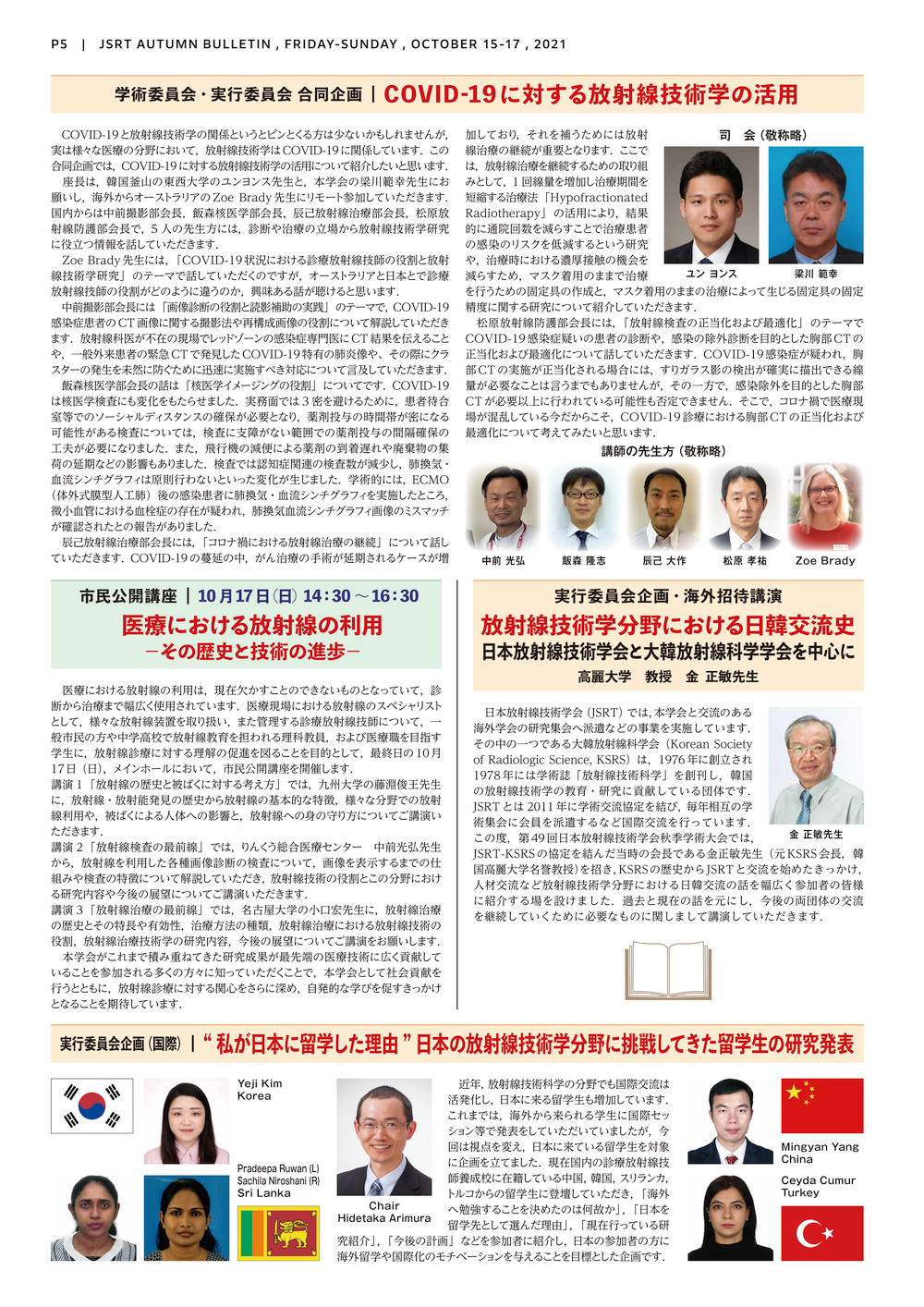 ▶ P5 ・学術委員会・実行委員会 合同企画 COVID-19 に対する放射線技術学の活用