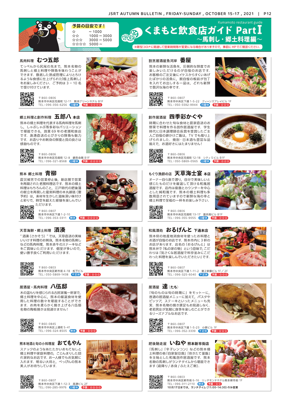 ▶ P12 ・くまもと飲食店ガイド PartⅠ ~馬刺し・郷土料理編~