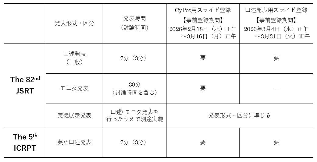 https://www.jsrt.or.jp/gmeeting/soukai82/ - The 5th ICRPT(International Conference on Radiological Physics and Technology)ホームページhttps://www.jsrt.or.jp/gmeeting/soukai82eng/
